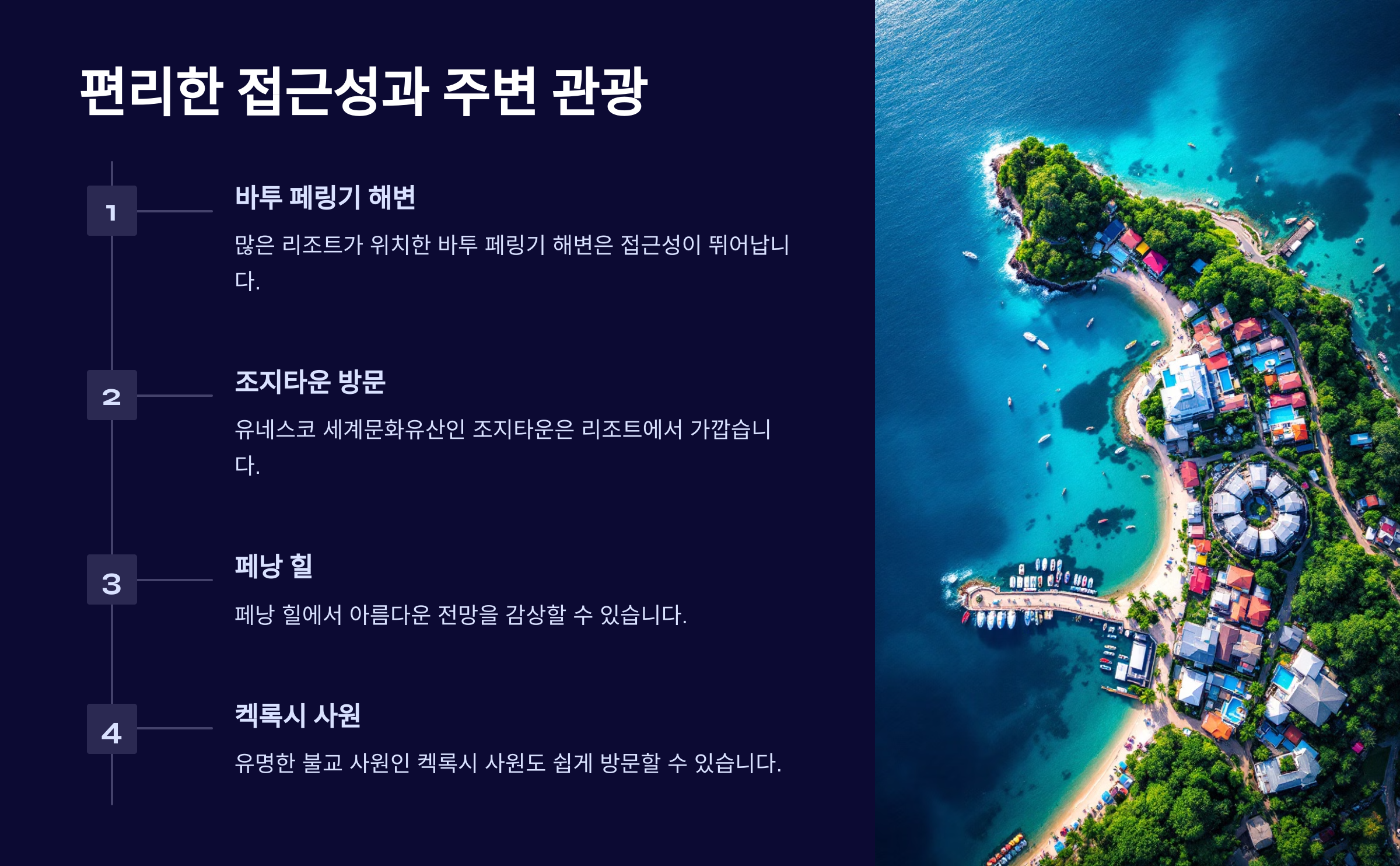 페낭 리조트를 선택할 때 어떤 점을 고려해야 할지, 어떤 리조트들이 추천되는지 알아보겠습니다. 이 글에서는 숙박 시설의 장점, 이용 팁, 주변 명소 정보까지 포함하여 여러분의 여행 계획에 도움이 되는 정보를 제공합니다.