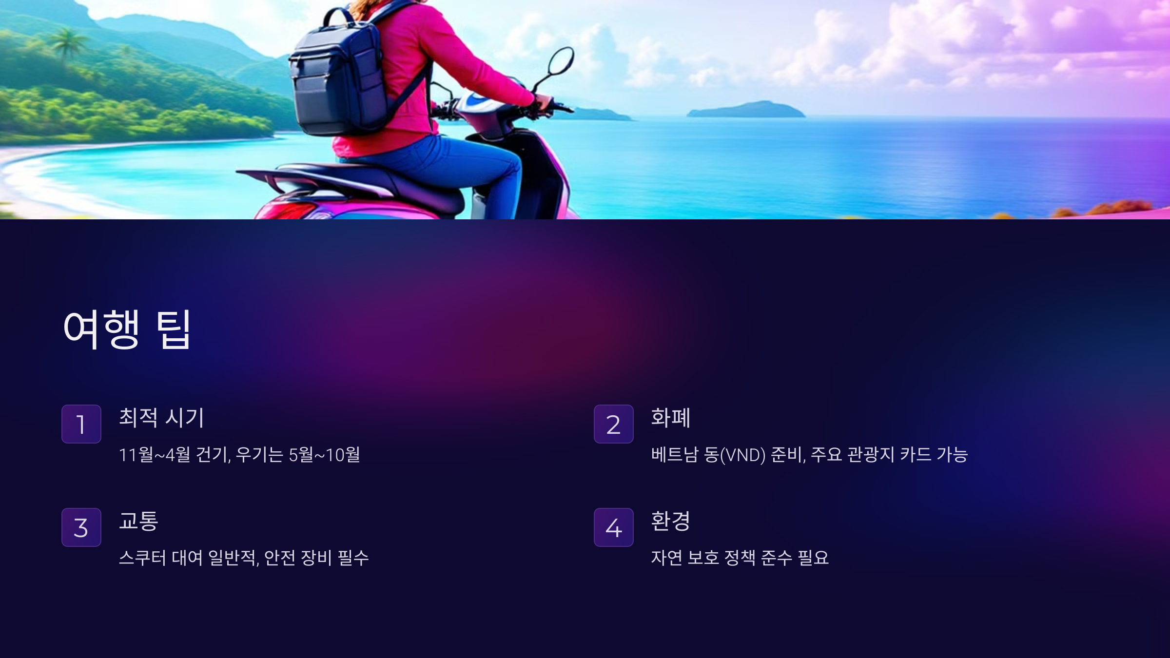 이 외에도 현지 어촌 마을과 시장, 불교 사원 등을 통해 전통 문화를 가까이에서 체험할 수 있습니다. 이번 가이드에서는 푸꾸옥 섬을 최대한으로 만끽할 수 있는 여행 팁과 필수 정보를 제공합니다.