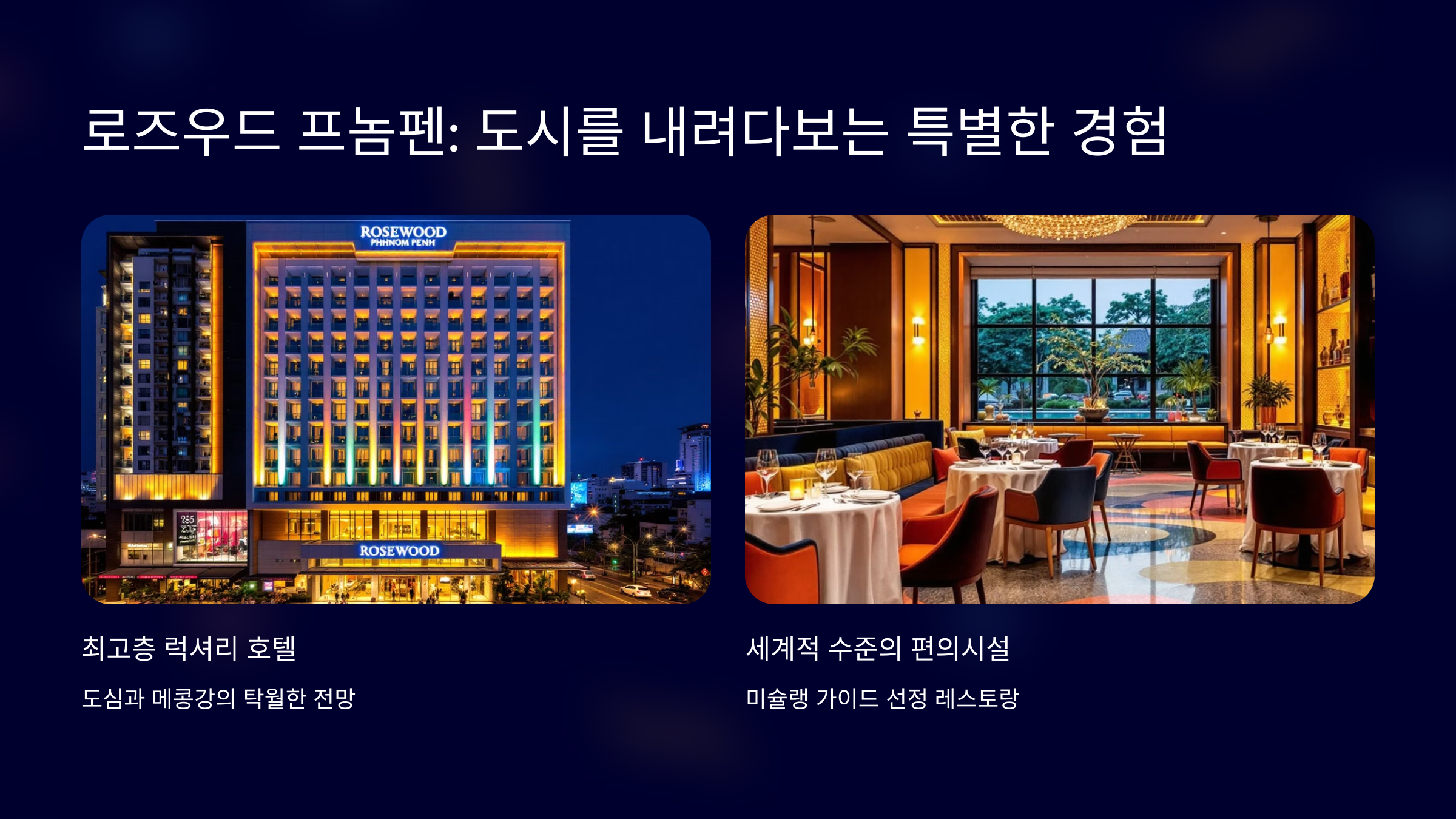 로즈우드 프놈펜은 프놈펜에서 가장 높은 건물에 위치한 럭셔리 호텔로, 도시 전망이 훌륭합니다.