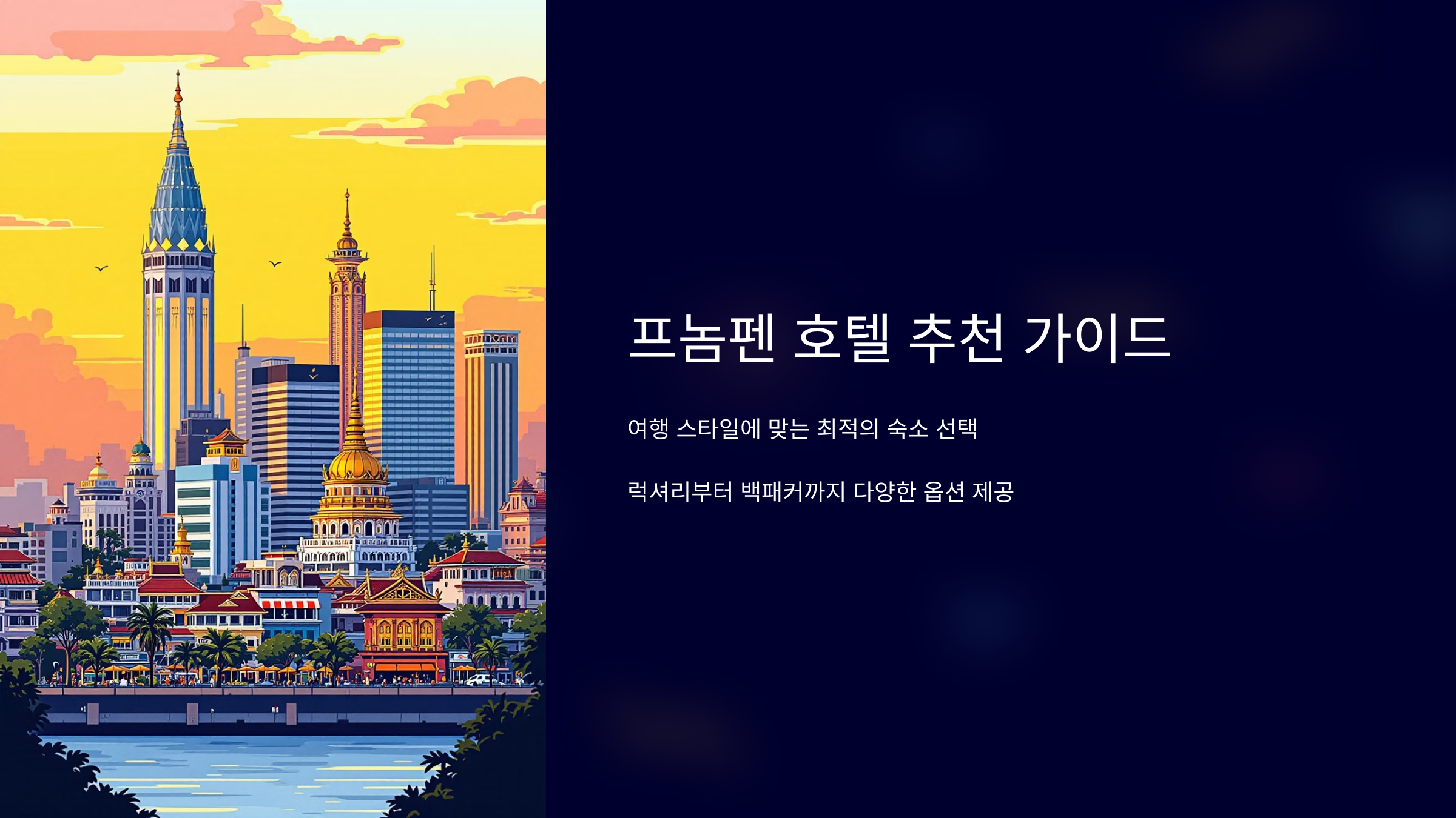 캄보디아의 수도 프놈펜은 독특한 문화와 풍부한 역사, 아름다운 메콩강의 풍경을 자랑하는 매력적인 도시입니다. 여행을 계획하면서 숙소를 고르는 일은 매우 중요합니다.