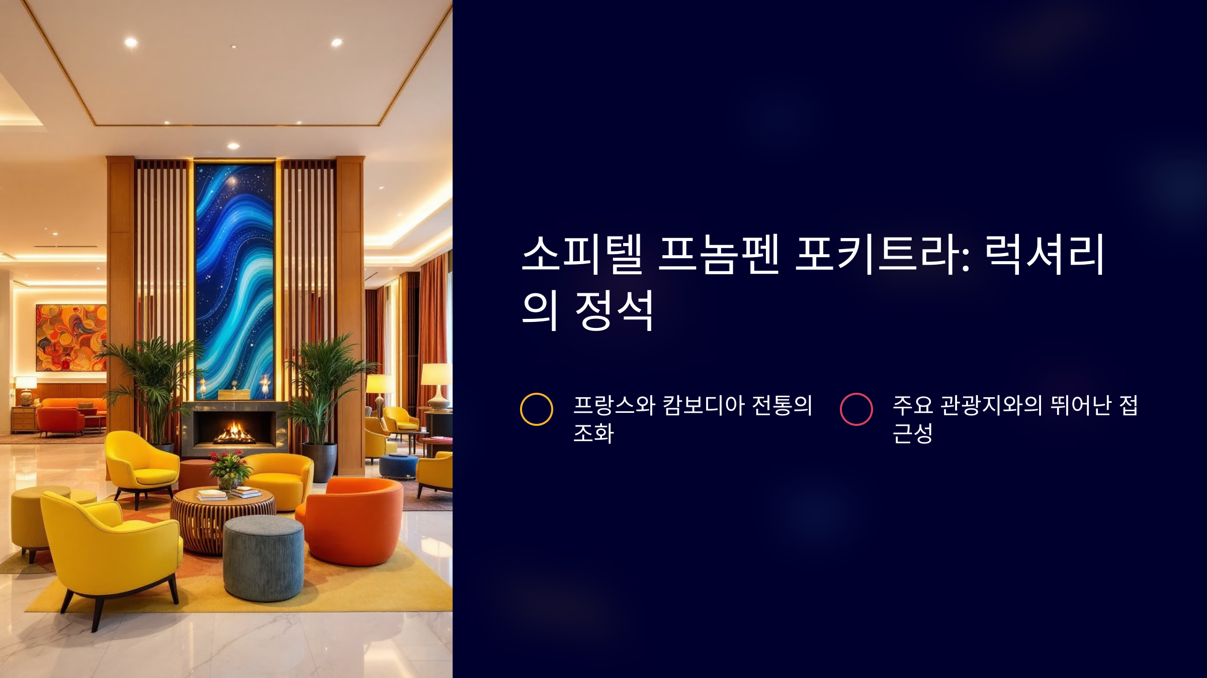 - 특징: 캄보디아 전통과 서구 스타일을 결합한 인테리어.