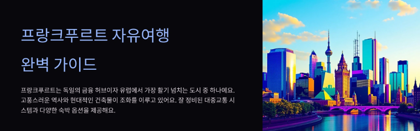 프랑크푸르트는 여행하기 쉬운 도시로, 잘 정비된 대중교통 시스템과 다양한 숙박 옵션을 제공해요. 특히 도보로 탐방할 수 있는 중심가는 여행 초보자들에게 딱이랍니다. 제가 생각했을 때, 프랑크푸르트는 자유여행 초보도 부담 없이 계획할 수 있는 최적의 도시 중 하나라고 할 수 있어요.