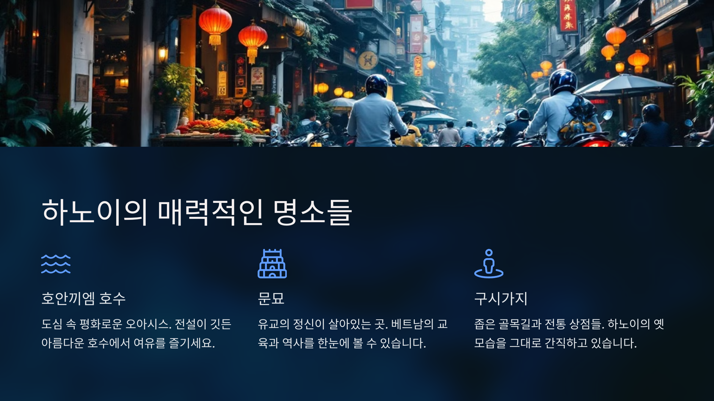 하노이는 베트남의 수도이자 문화와 역사가 어우러진 도시로, 동남아시아의 매력을 고스란히 느낄 수 있는 여행지입니다. 이곳은 전통과 현대가 공존하며, 다양한 볼거리와 먹거리, 그리고 저