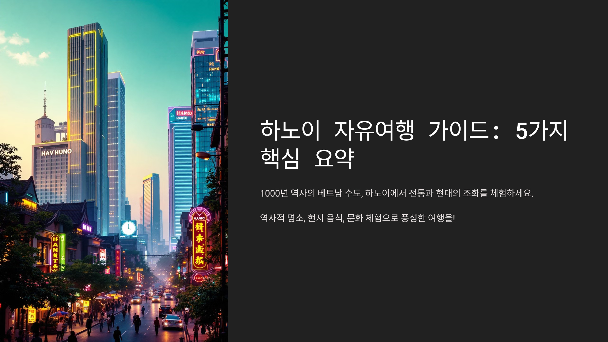 하노이는 베트남의 수도이자 문화와 역사가 어우러진 도시로, 동남아시아의 매력을 고스란히 느낄 수 있는 여행지입니다. 이곳은 전통과 현대가 공존하며, 다양한 볼거리와 먹거리, 그리고 저렴한 물가로 많은 여행자들의 사랑을 받고 있습니다. 특히 자유여행으로 방문하면 여행자 스스로 원하는 일정과 체험을 구성할 수 있어 더욱 매력적입니다.