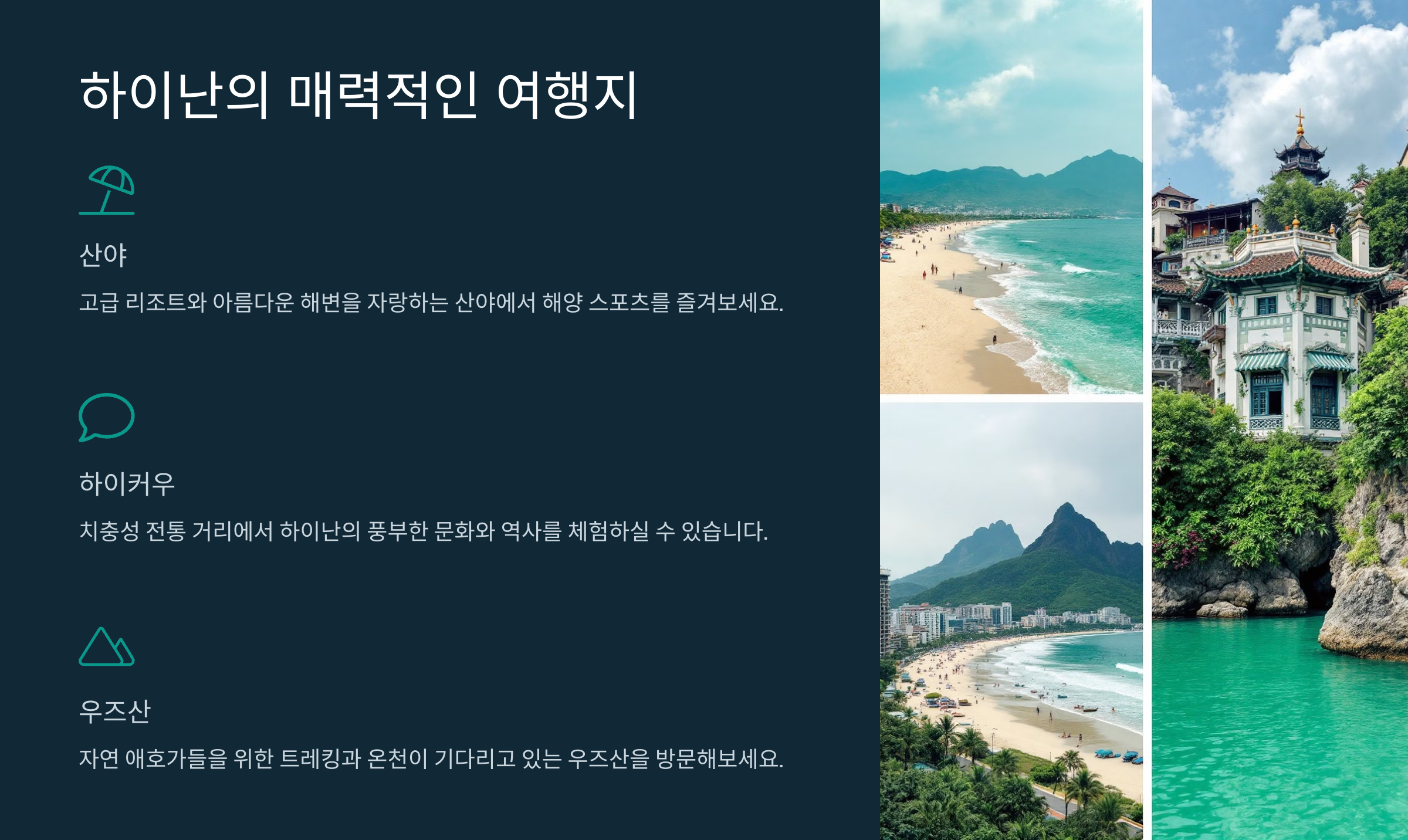 그러나 하이난 자유여행을 완벽히 계획하기 위해서는 철저한 준비와 꼼꼼한 정보가 필요합니다. 숙박지 선택, 교통, 액티비티, 현지 문화 등을 미리 파악하면 더욱 즐겁고 알찬 여행이 가능합니다. 이번 글에서는 하이난 자유여행을 계획하는 데 꼭 필요한 정보와 꿀팁을 모두 담았습니다.
