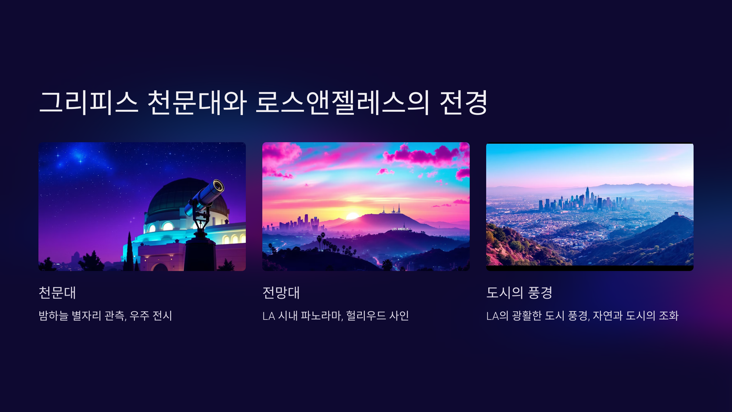 로스앤젤레스는 전 세계에서 가장 매력적인 도시 중 하나로, 다양한 문화, 역사, 그리고 현대적인 감각이 어우러진 곳이에요. 헐리우드의 화려함부터 산타모니카의 아름다운 해변까지, 이 도시에는 누구나 즐길 수 있는 무궁무진한 매력이 있어요. 제가 생각했을 때, 로스앤젤레스는 단순한 여행지가 아니라 색다른 경험을 선사하는 특별한 장소라고 느껴져요.