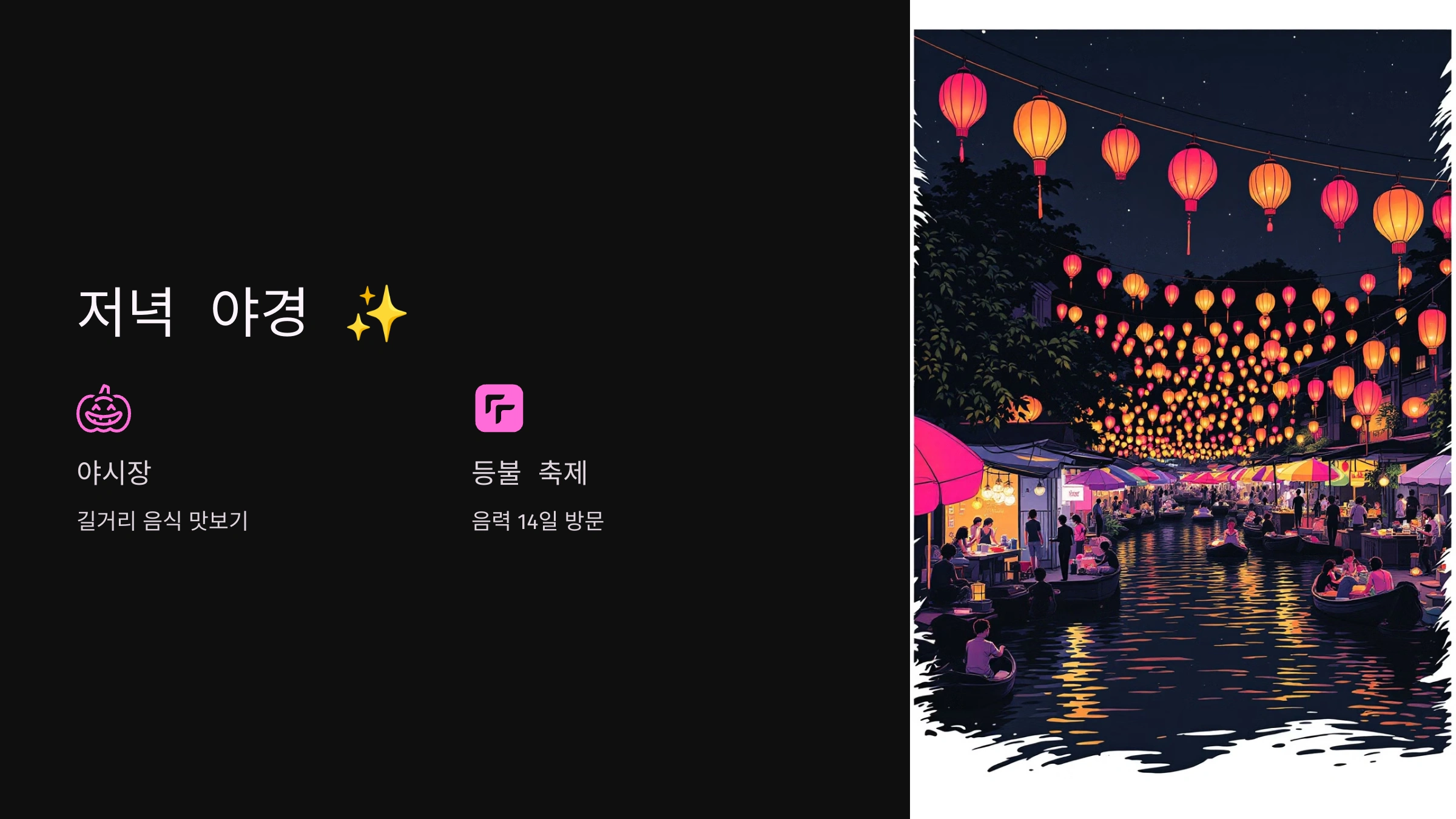 🔹 추천 액티비티: 야시장 구경, 강가 등불 띄우기