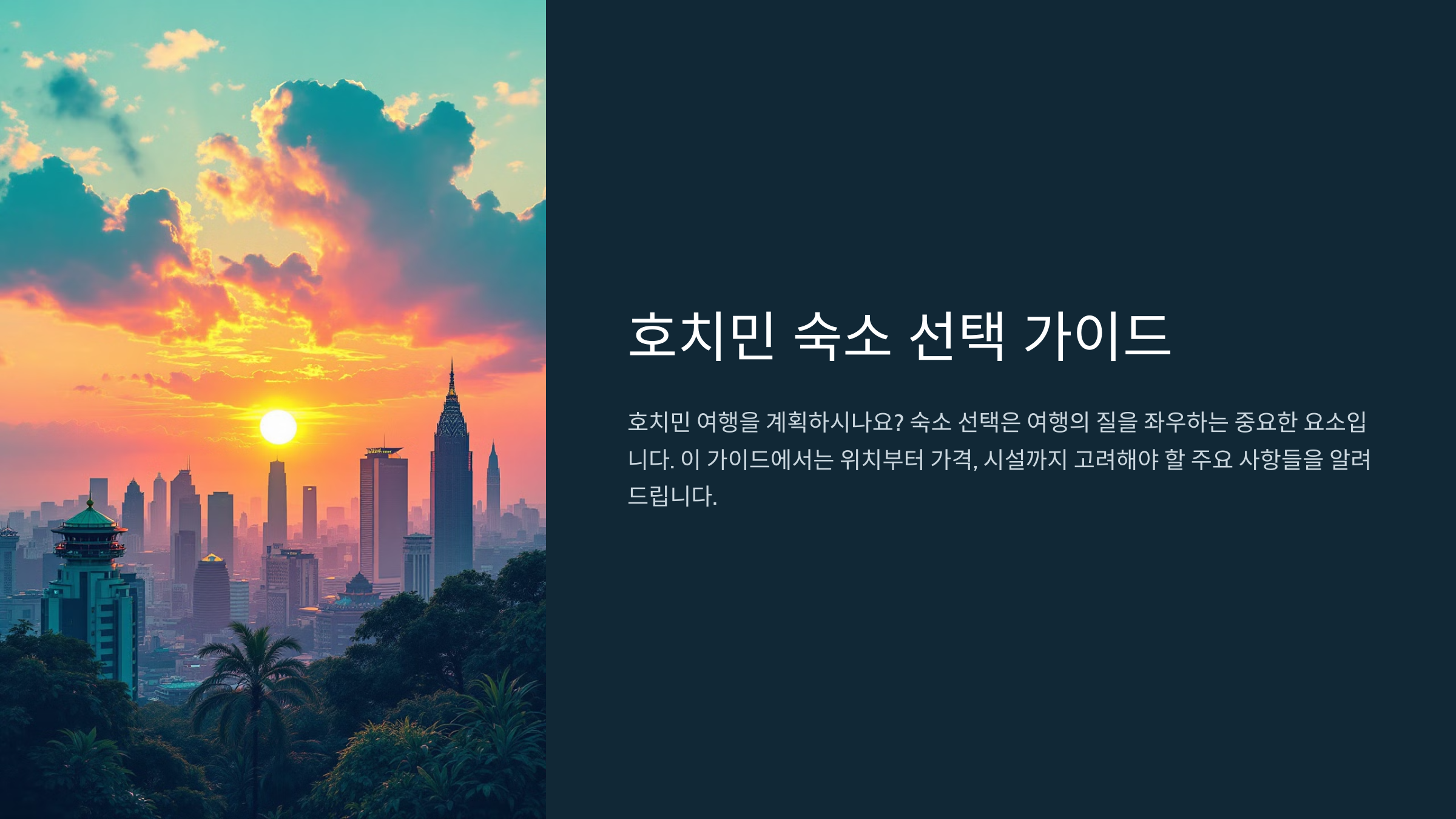 이 글에서는 호치민을 방문할 때 숙박하기 좋은 추천 숙소와 함께, 위치와 서비스, 가격 등을 고려한 선택 팁을 제공합니다. 여행 목적과 예산에 따라 최적의 숙소를 선택해 보세요!
