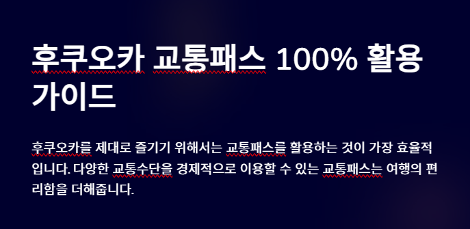 후쿠오카 교통패스는 여행자들에게 편리하고 경제적인 이동을 제공하는 패스입니다.
