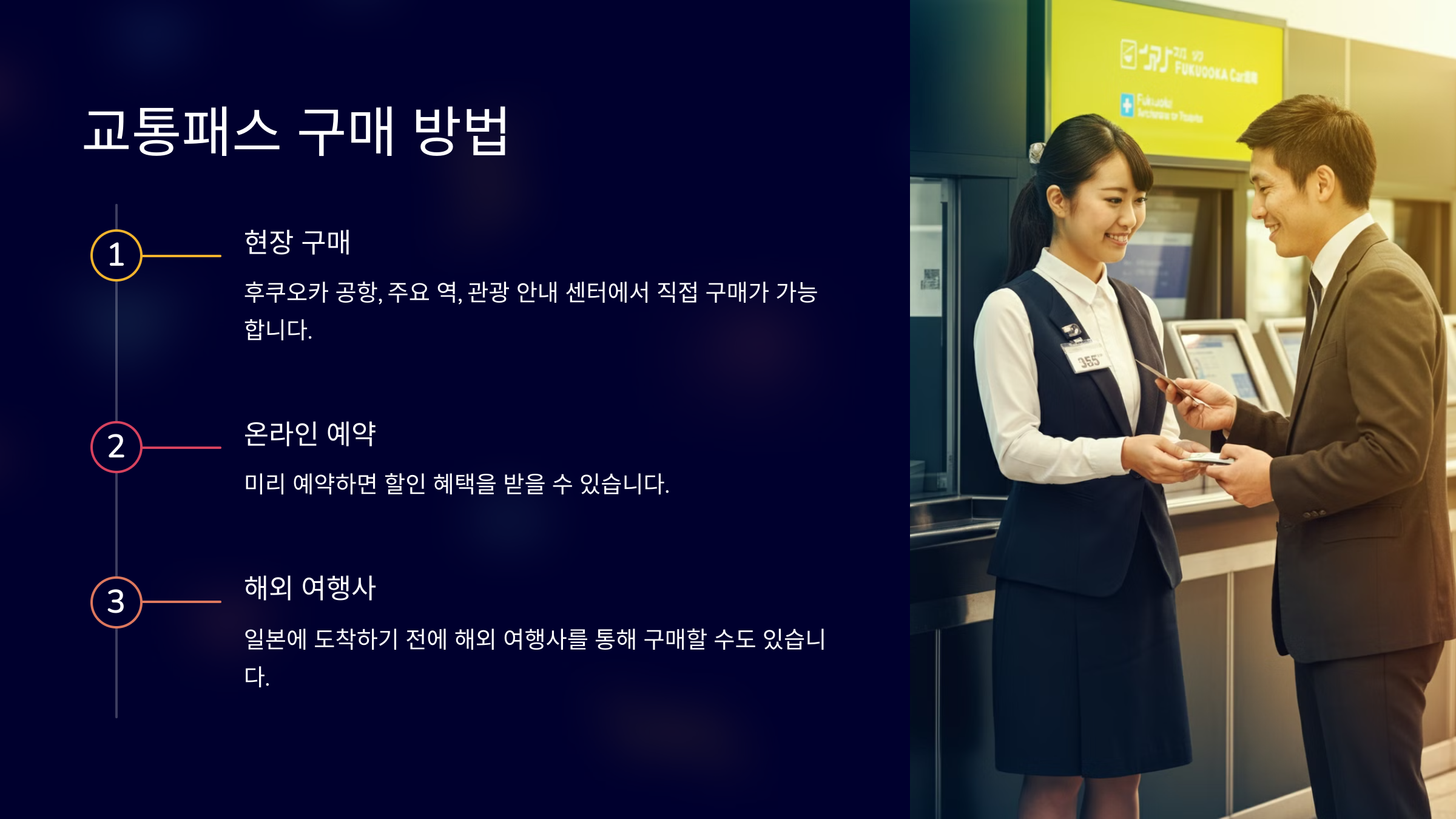 후쿠오카 공항, 주요 역, 관광 안내 센터에서 직접 구매가 가능합니다.