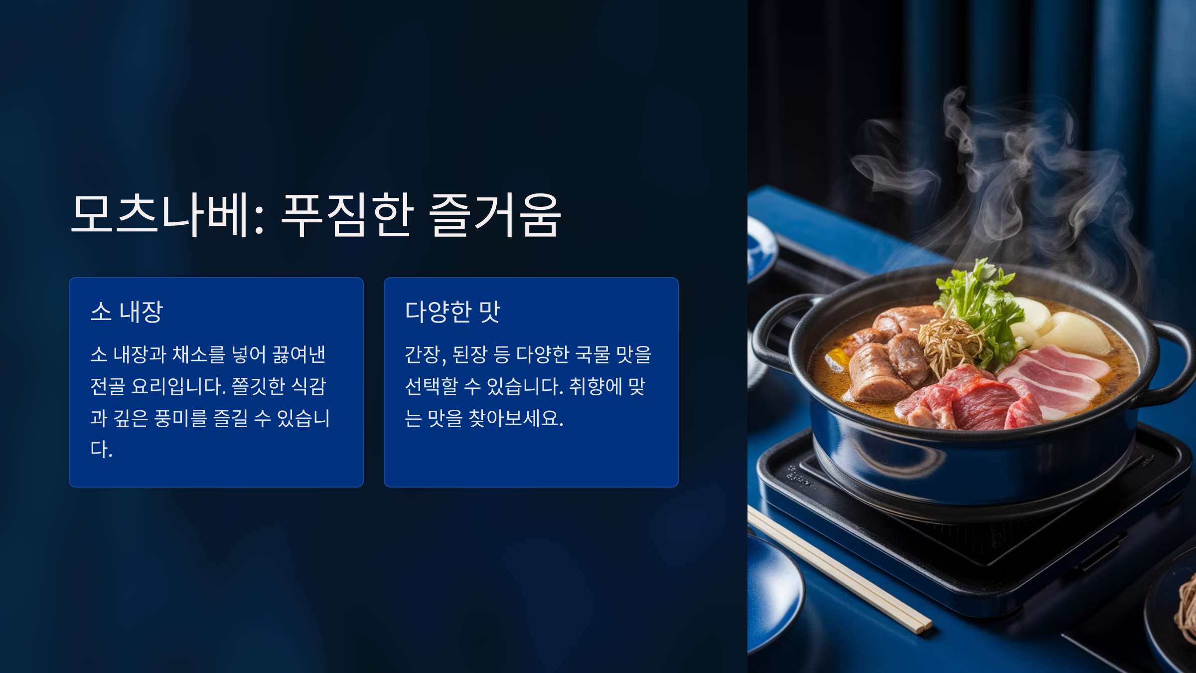 모츠나베는 소의 내장과 채소를 베이스로 한 전골 요리로, 후쿠오카의 겨울철 대표 음식입니다. 간장, 된장 등 다양한 국물 베이스로 요리되며, 깊고 고소한 맛이 일품입니다. 모츠나베는 몸을 따뜻하게 해주는 겨울 음식이지만, 사계절 내내 즐길 수 있어 후쿠오카 여행객에게 인기 만점입니다.