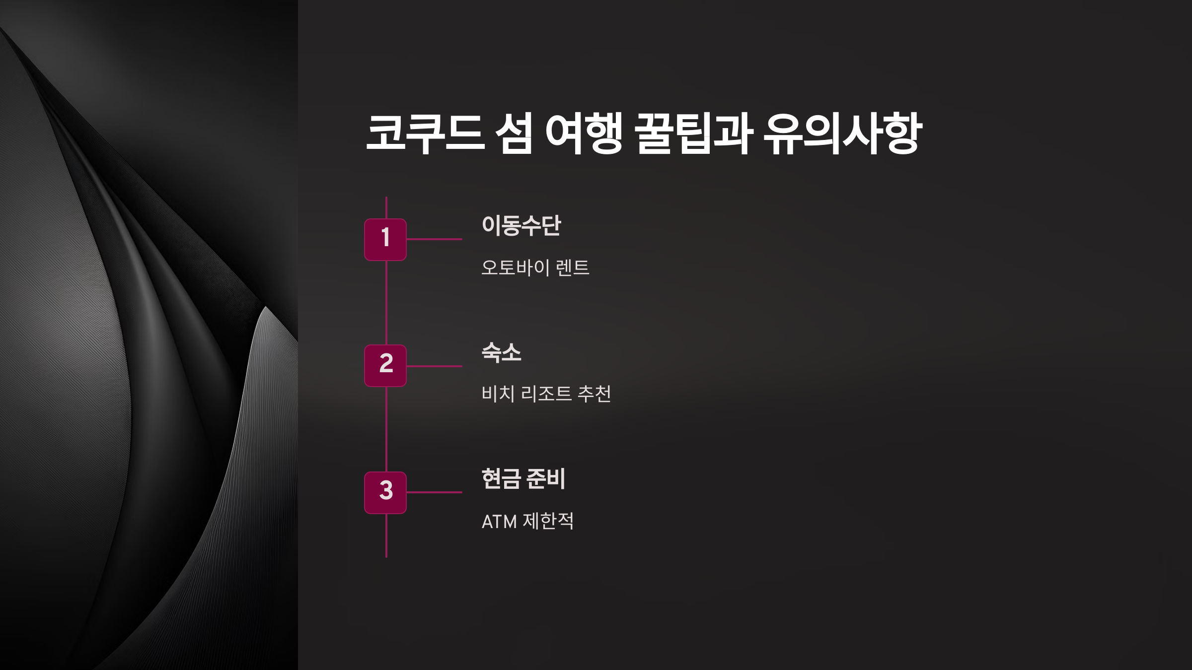 코쿠드는 태국에서도 비교적 덜 알려진 여행지라서, 미리 알아두면 좋은 팁들이 많아요! 🏝️