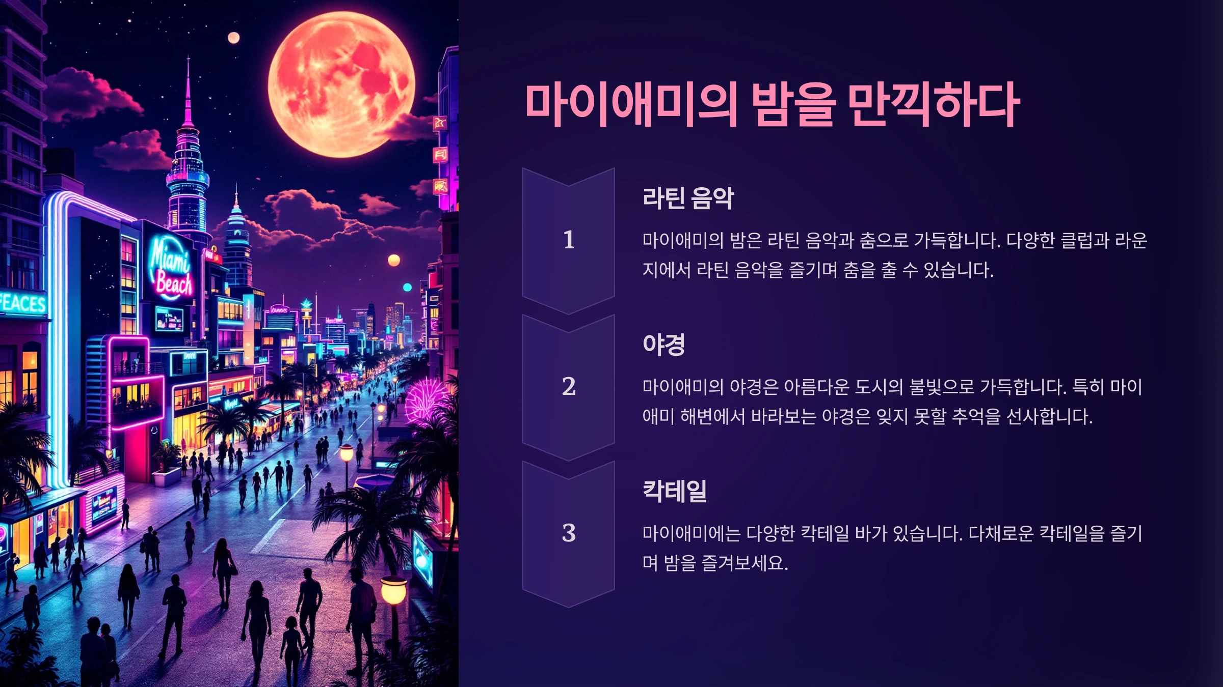 이 가이드는 마이애미에서 꼭 가봐야 할 장소들을 중심으로 준비했어요. 역사적인 배경부터 현지 미식 탐방, 숨겨진 쇼핑 명소까지 모든 것을 한눈에 볼 수 있도록 구성했답니다. 도시 곳곳의 매력을 한껏 느끼며 잊지 못할 여행을 계획해 보세요!